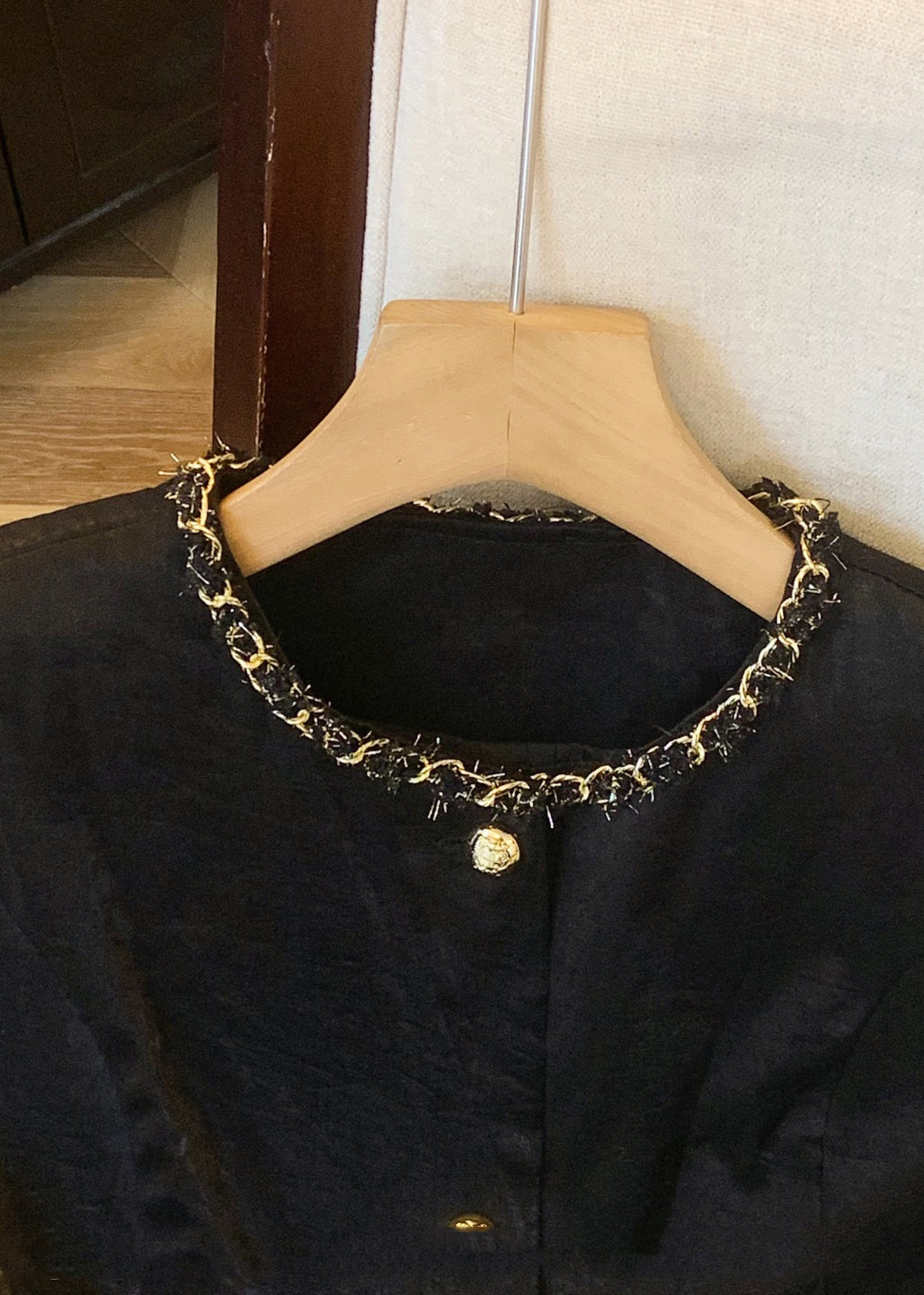 2025 New Black V Neck Zippered Silk Velvet Coat Batwing Sleeve