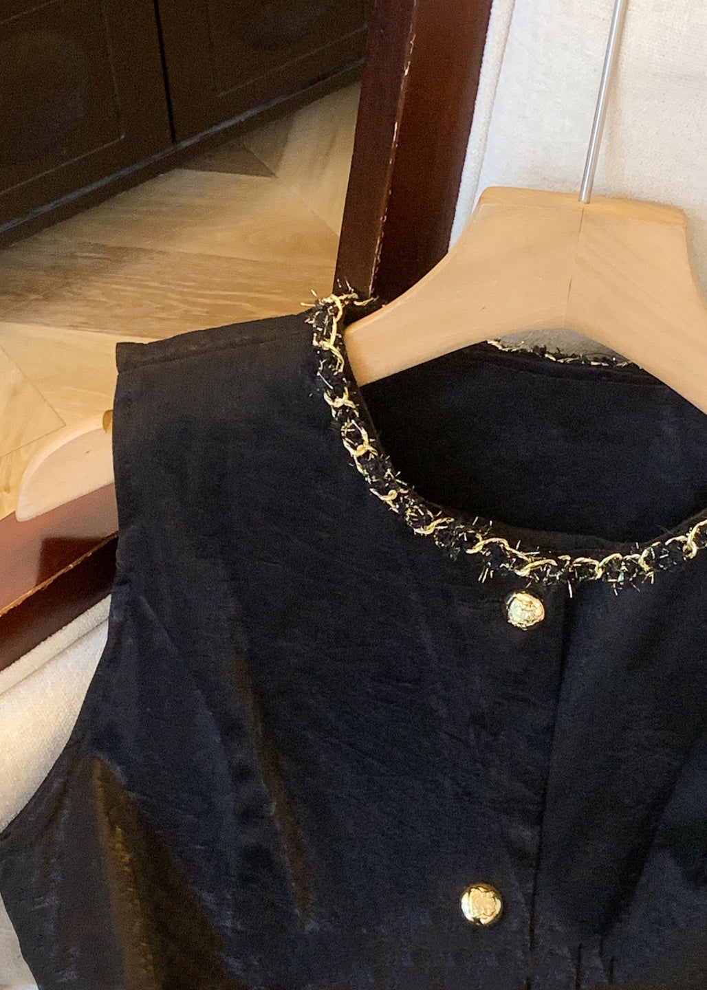 Vintage Black O-Neck Button Silk Velour Waistcoat Sleeveless