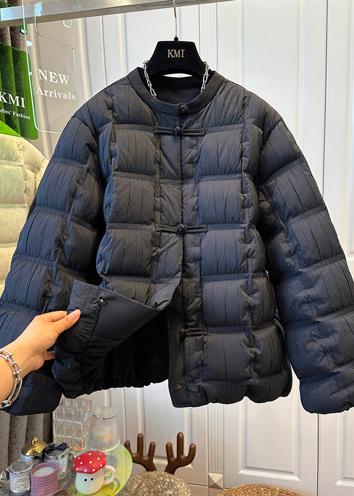 Boho Beige Oversized Chinese Button Duck Down Down Coats Winter
