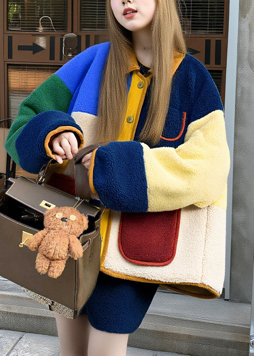 Women Multicolored Oversized Patchwork Fuzzy Fur Fluffy Jacket Winter
