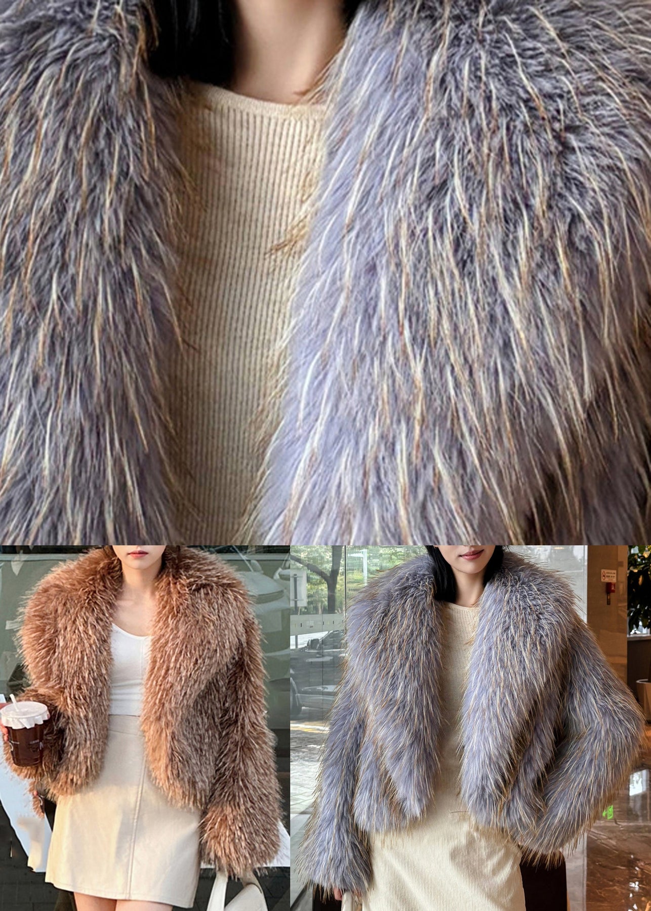 Elegant Purple Peter Pan Collar Leather And Fur Long Sleeve