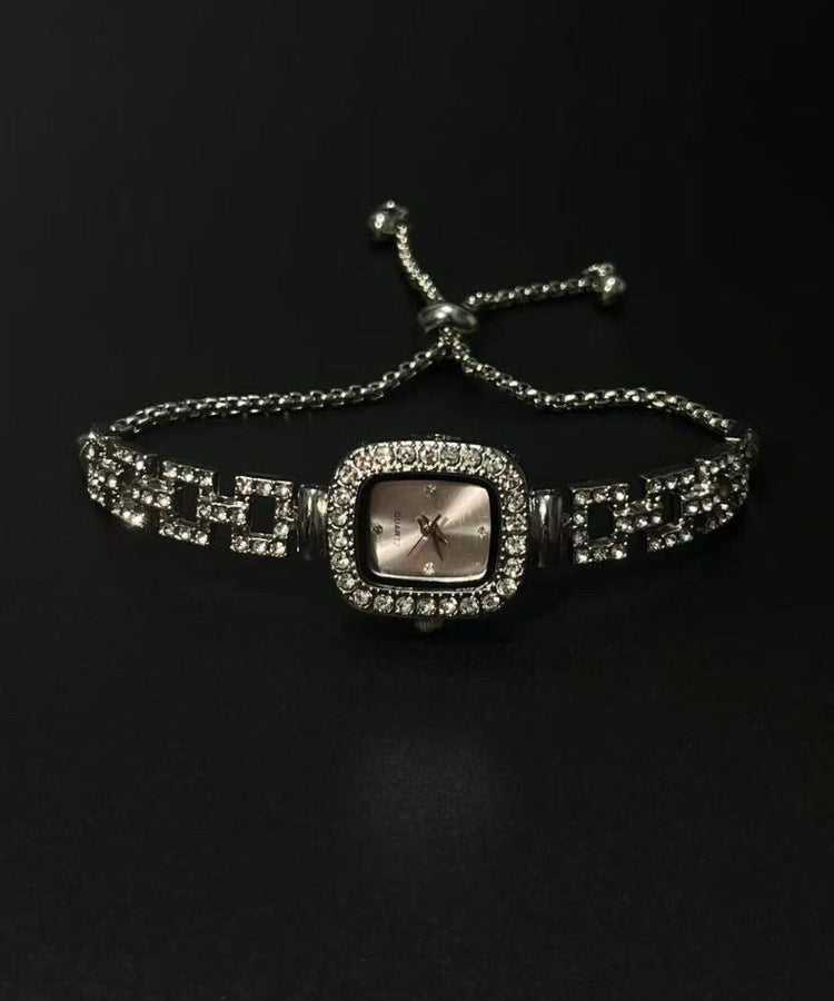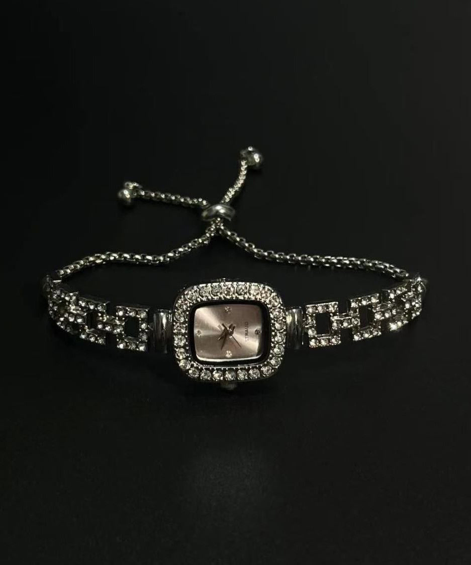 Simple Silk Stainless Steel Zircon Sugar Cube Chain Watches