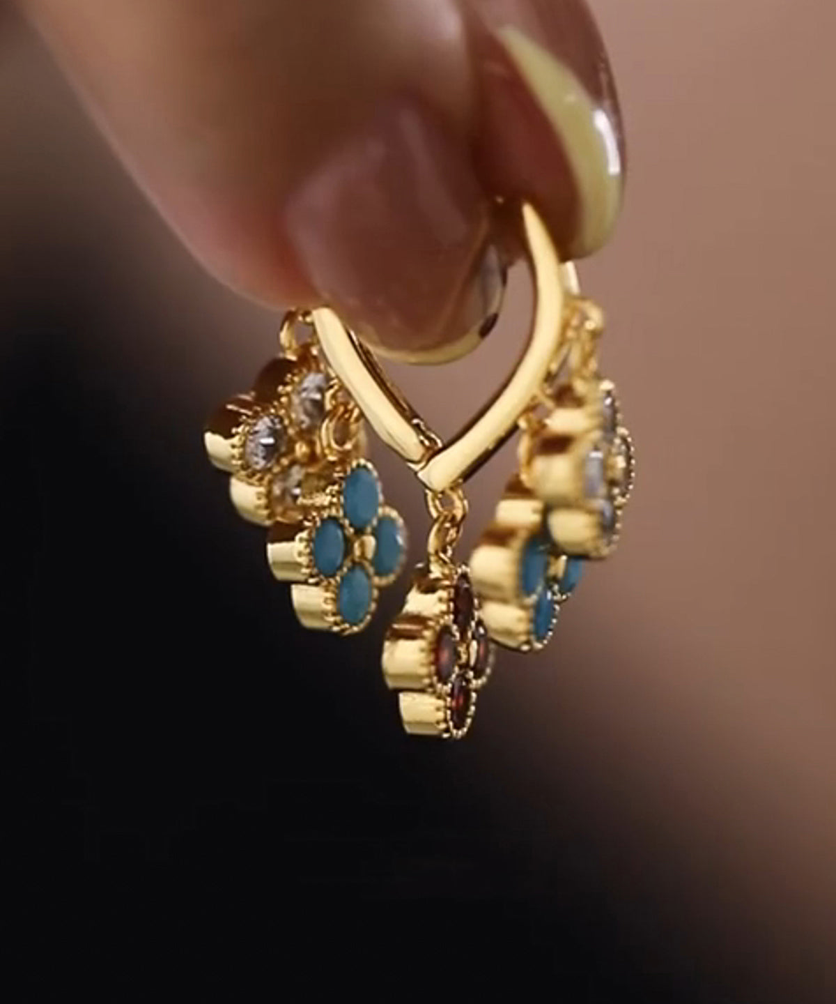 Fine Rainbow Copper Overgild Four-Leaf Clover Drop Earrings