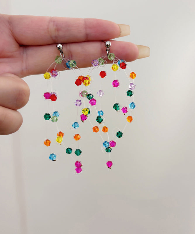 Vogue Rainbow Weave Crystal Tassel Necklace And Drop Earrings Two-Piece Set