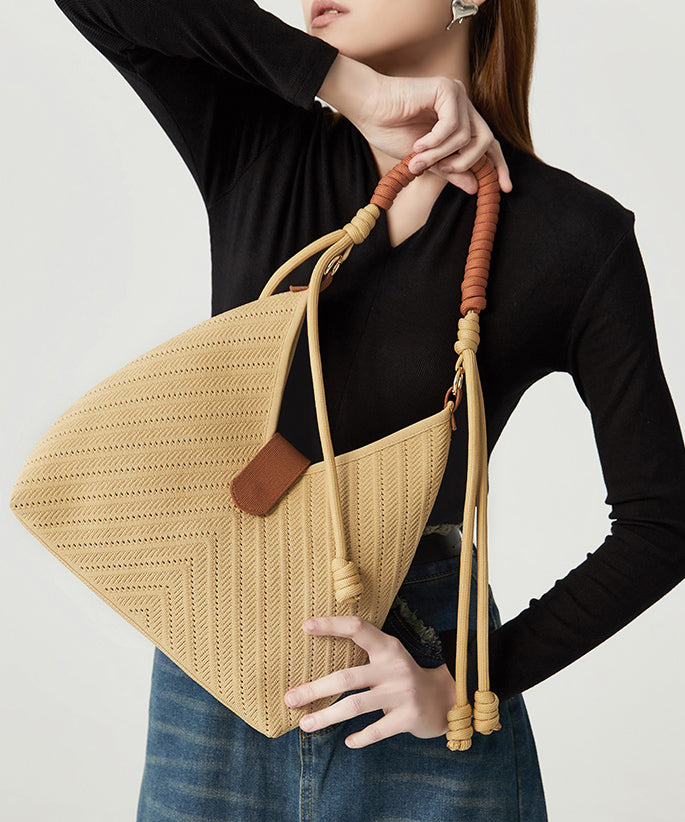 Art Khaki Hollow Out Tasseled Woven Shoulder Bags