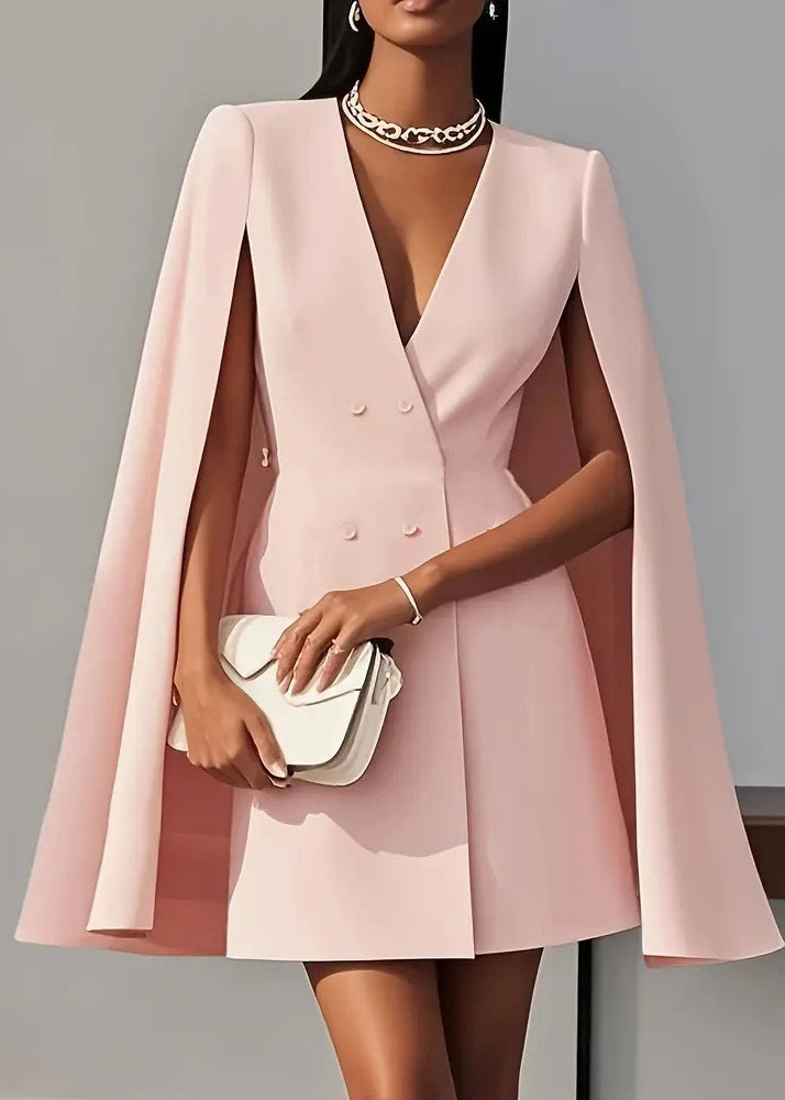 Chic Black V Neck Patchwork Spandex Work Dress Cloak Sleeves