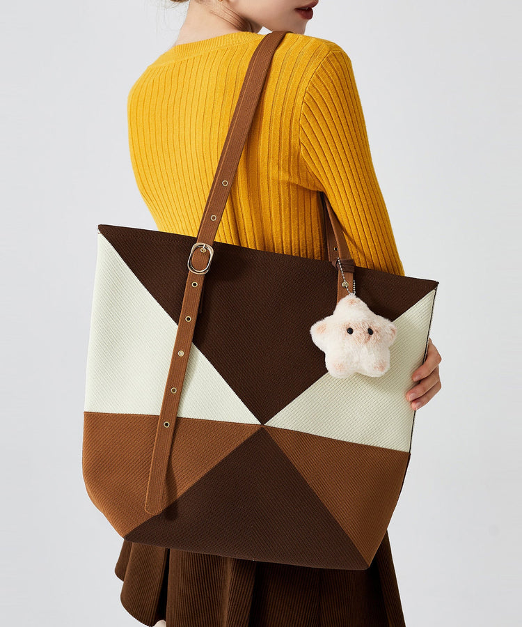 Unique Colorblock Solid Durable Large Capacity Cotton Shoulder Bags