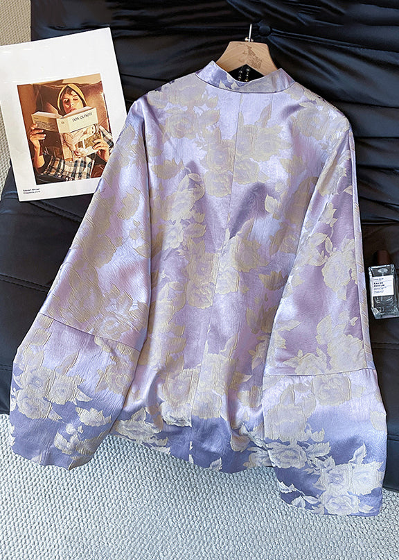 Jacquard Purple Stand Collar Button Silk Coat Fall