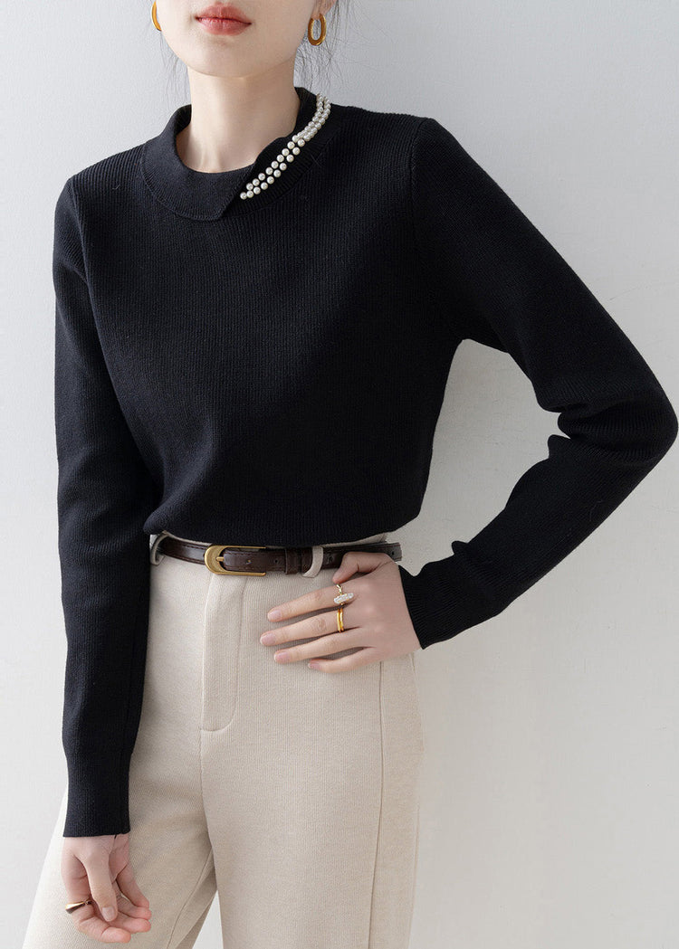 Original Design Black Nail Bead Warm Knit Sweaters Winter