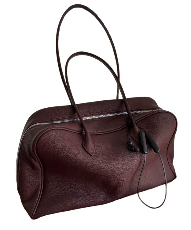 Simple Chocolate Zippered Large Capacity Leather Shoulder Bags