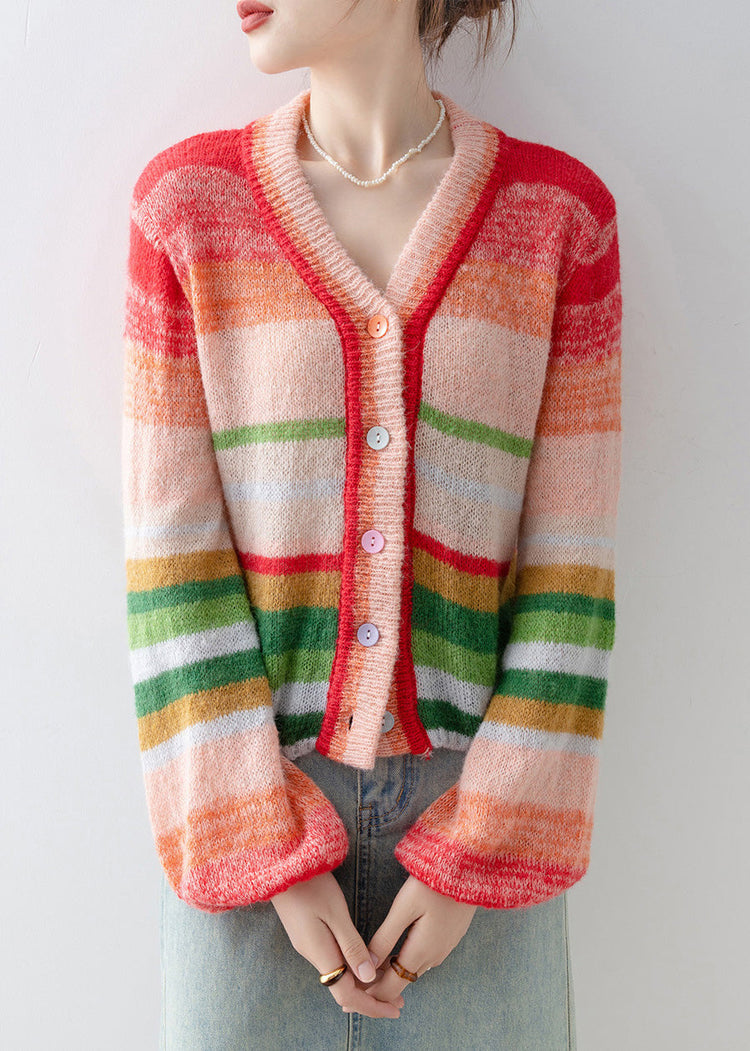 2025 New V Neck Striped Button Knit Cardigans Spring