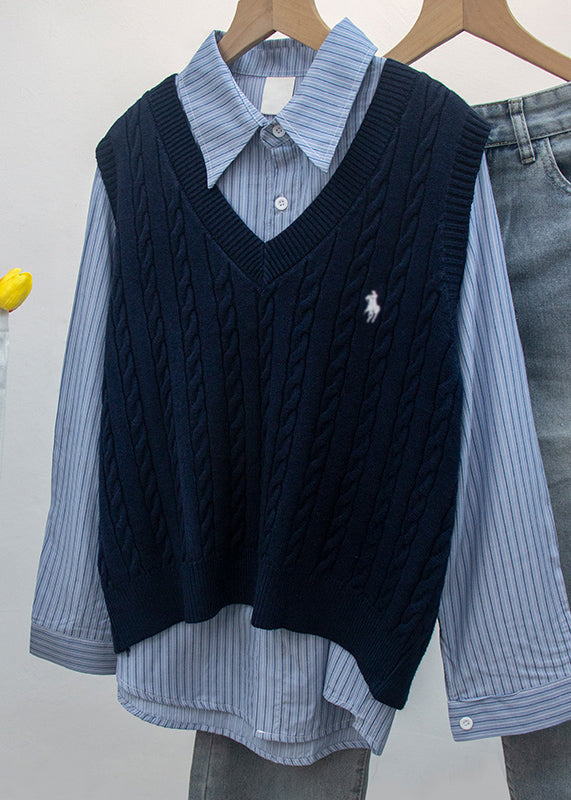 Chic White V Neck Embroideried Knit Vest Sleeveless