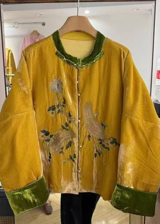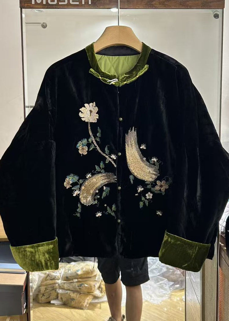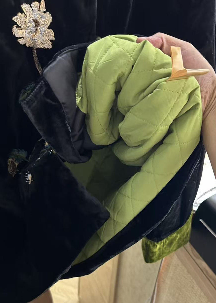Chinese Style Embroidered Silk Velvet Fine Cotton Filled Coats Winter