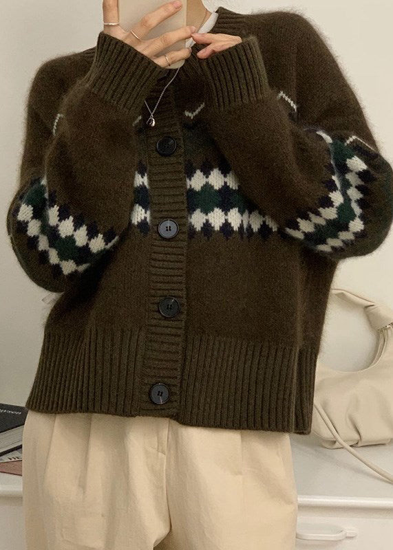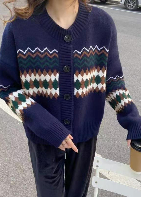 Fashion Apricot O Neck Jacquard Button Knit Cardigans Spring