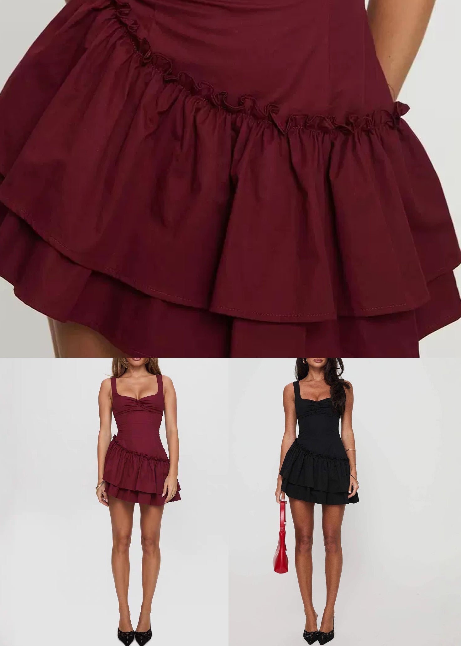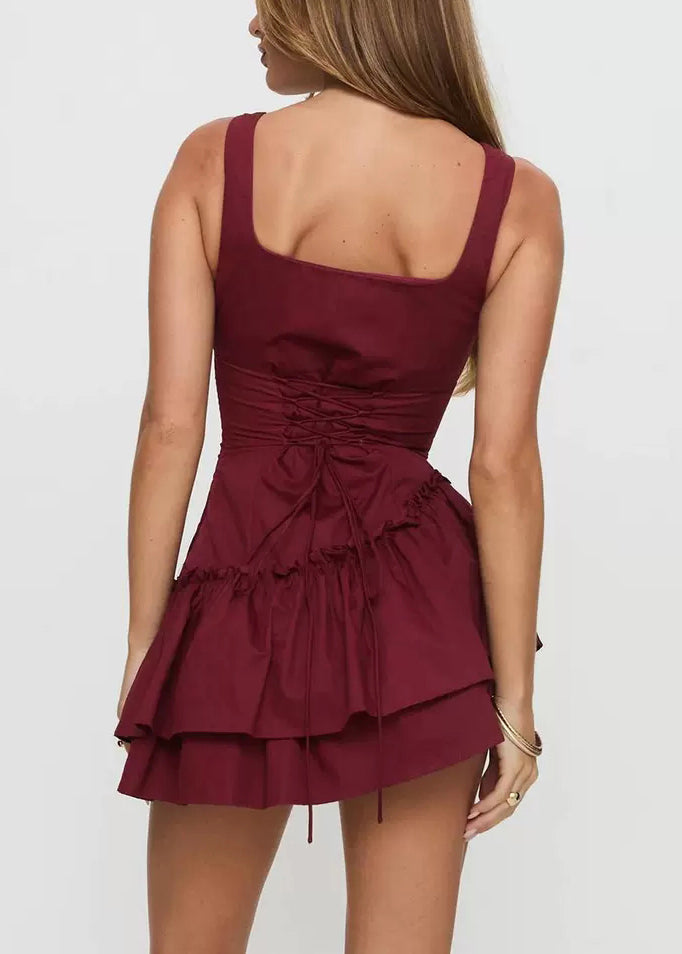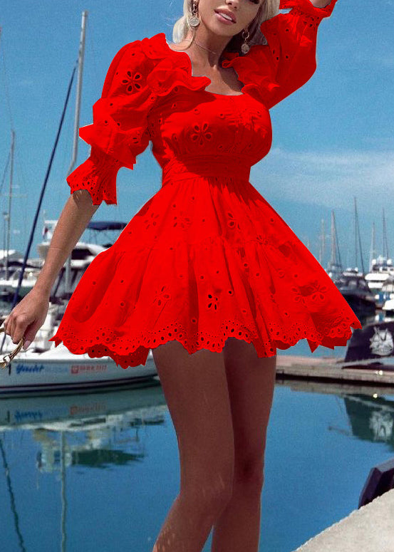 Sexy Red Ruffled Solid Cotton Mini Dresses Summer