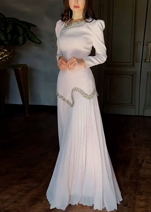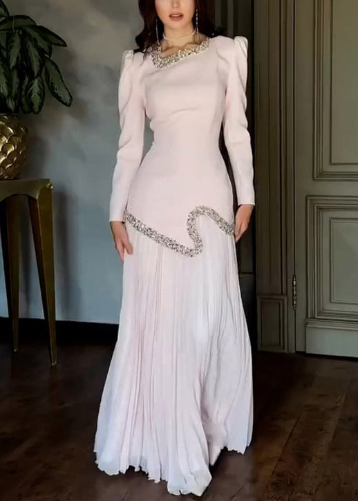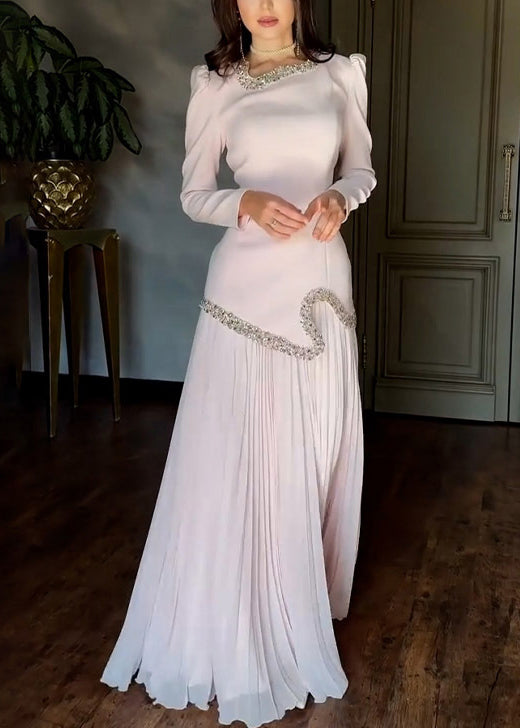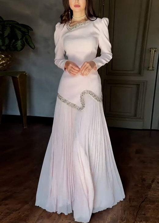 Elegant Pink Nail Bead Tops And Wrinkled Skirts Chiffon Two Pieces Set