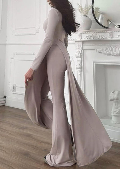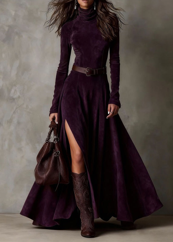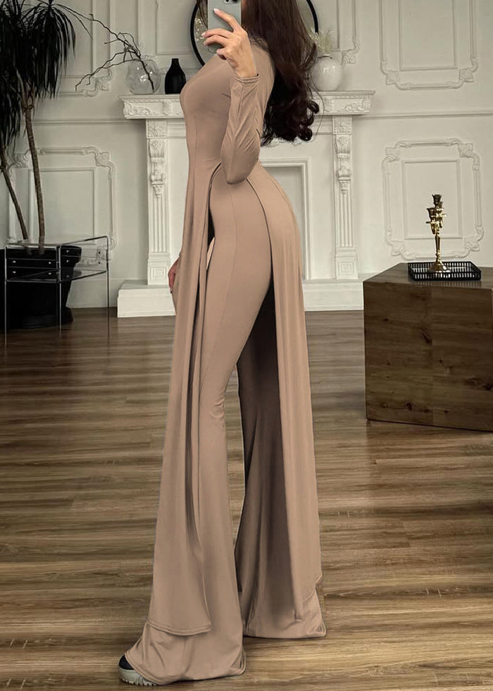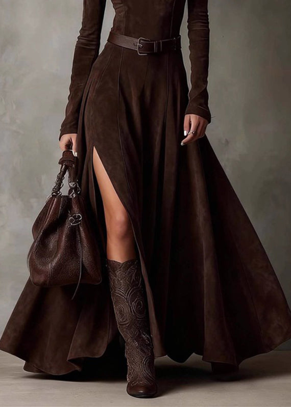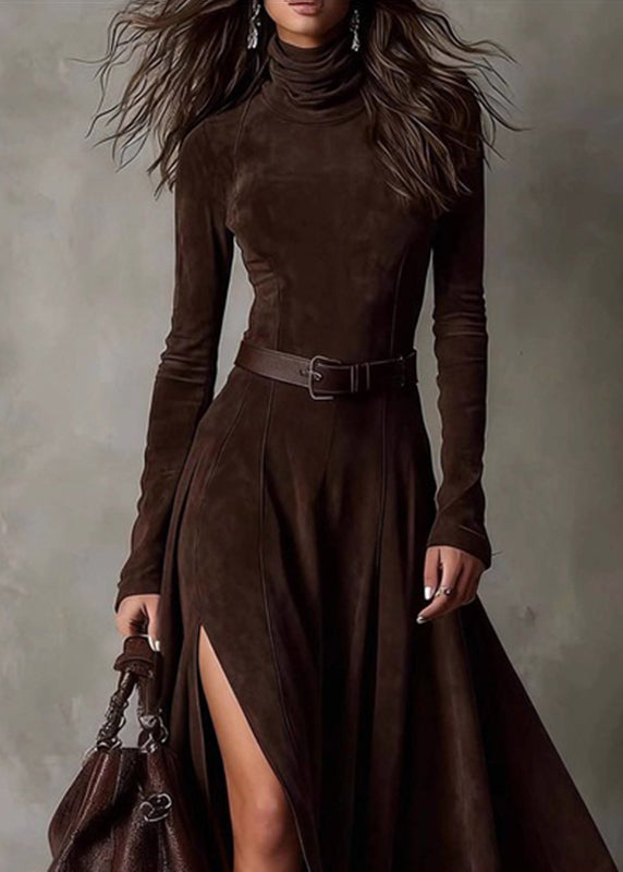 Sexy Coffee Patchwork Sashes Side Open Maxi Dresses Spring