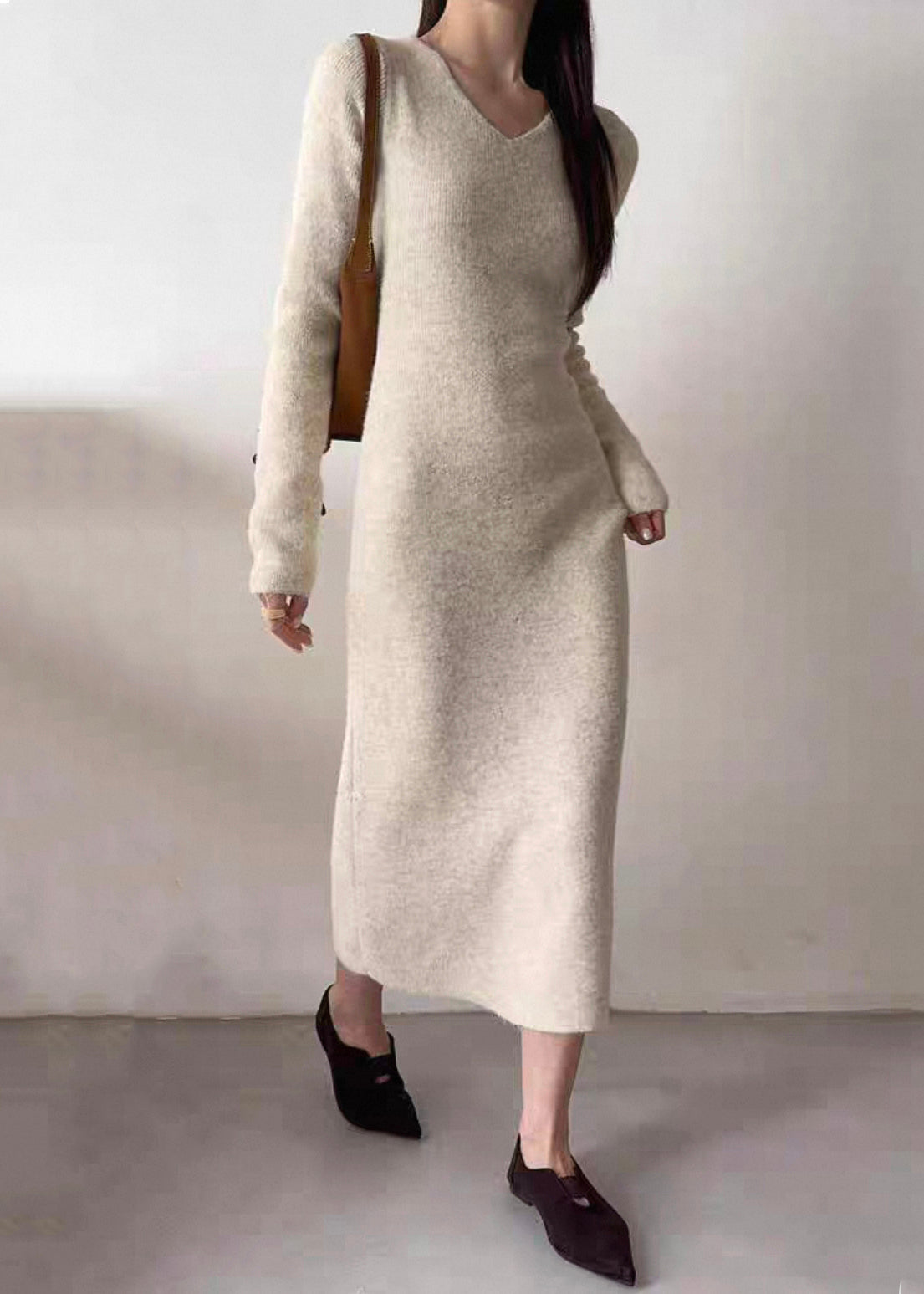 Slim Fit Beige Button Coat And Dresses Knit Three Piece Set Spring