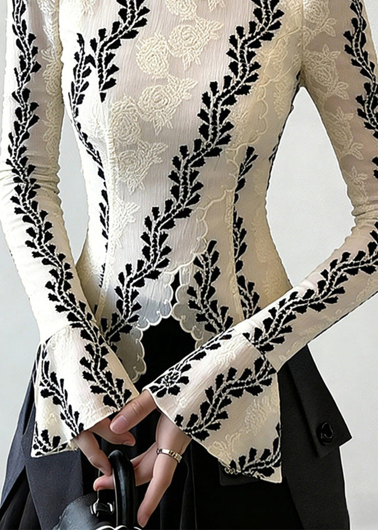 Stylish White Jacquard Chiffon Shirt Top Flare Sleeve