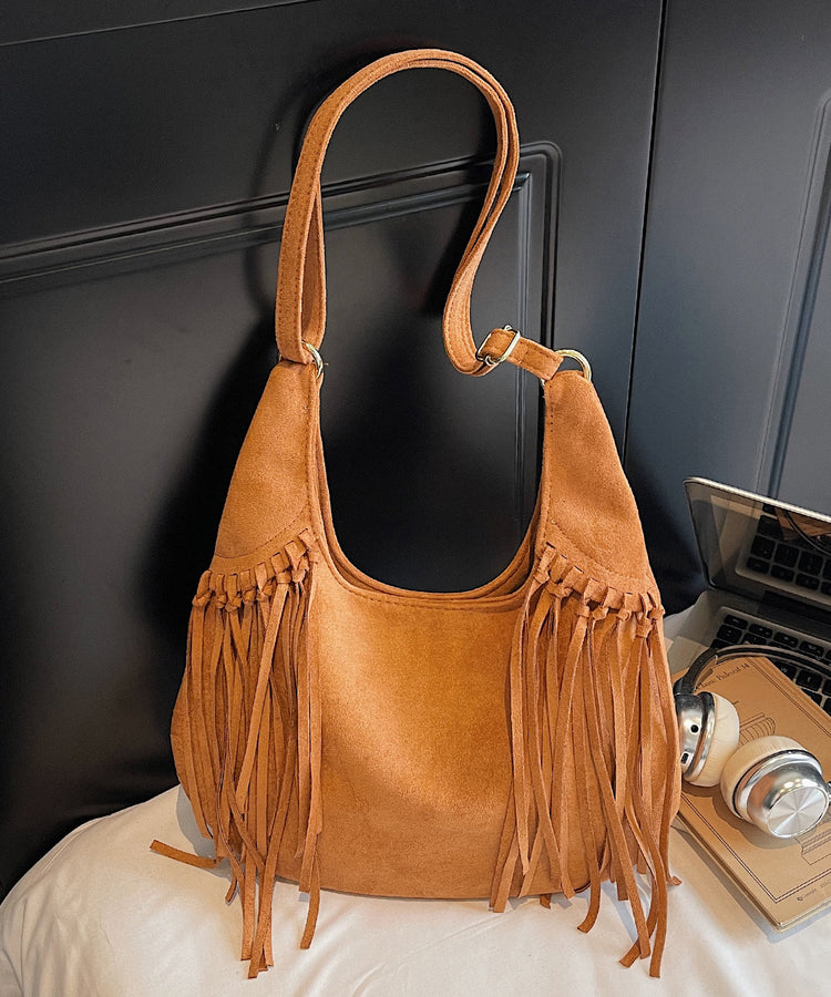 Bohemian Tasseled Solid Durable Suede Velour Messenger Bag