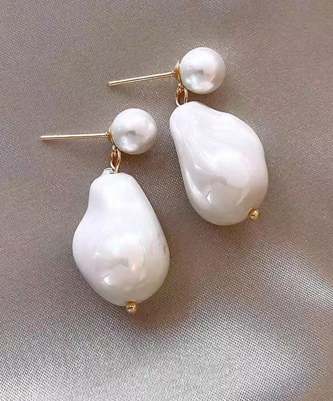 Chic White Copper Overgild Asymmetrical Pearl Drop Earrings