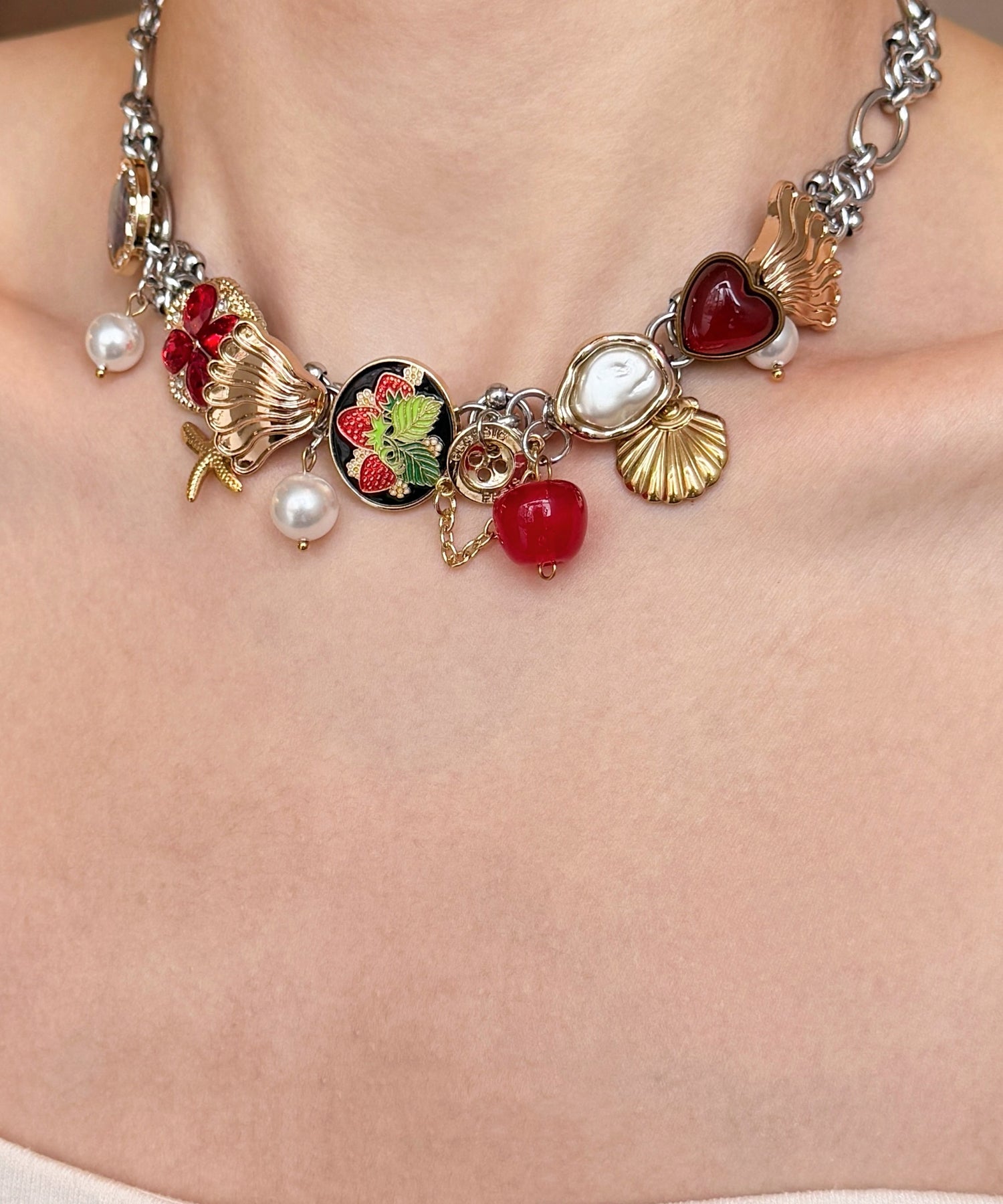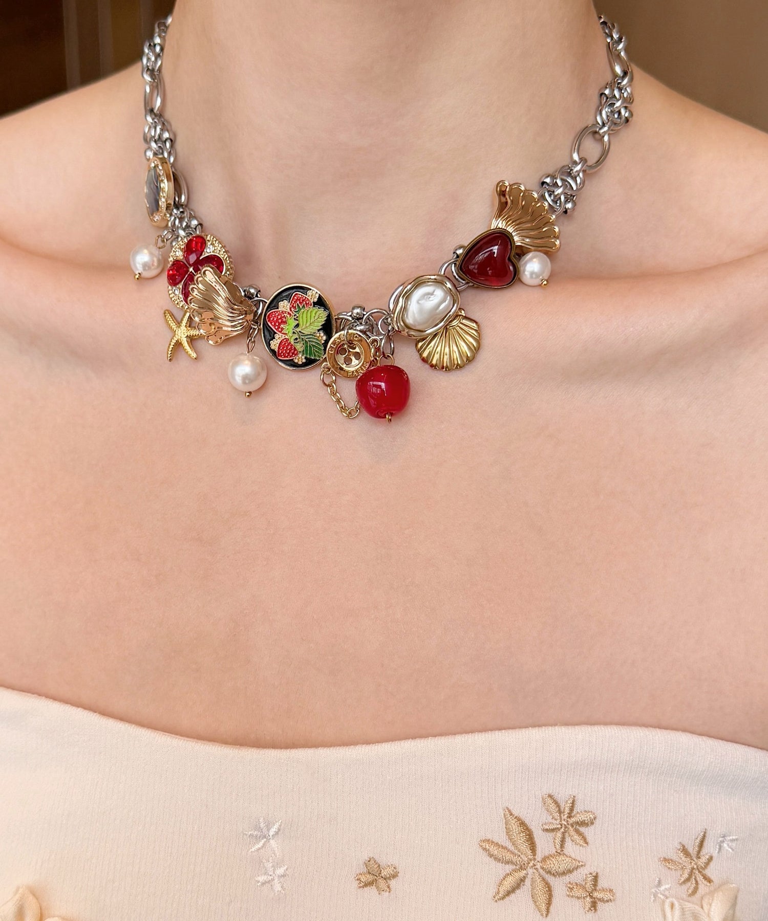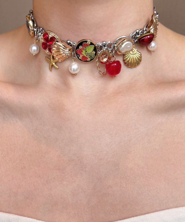 Elegant Red Strawberry Shell Pearl Adjustable Alloy Choke
