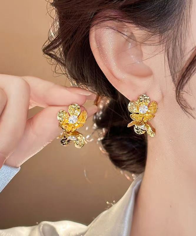 Fine Gold Copper Overgild Zircon Floral Stud Earrings