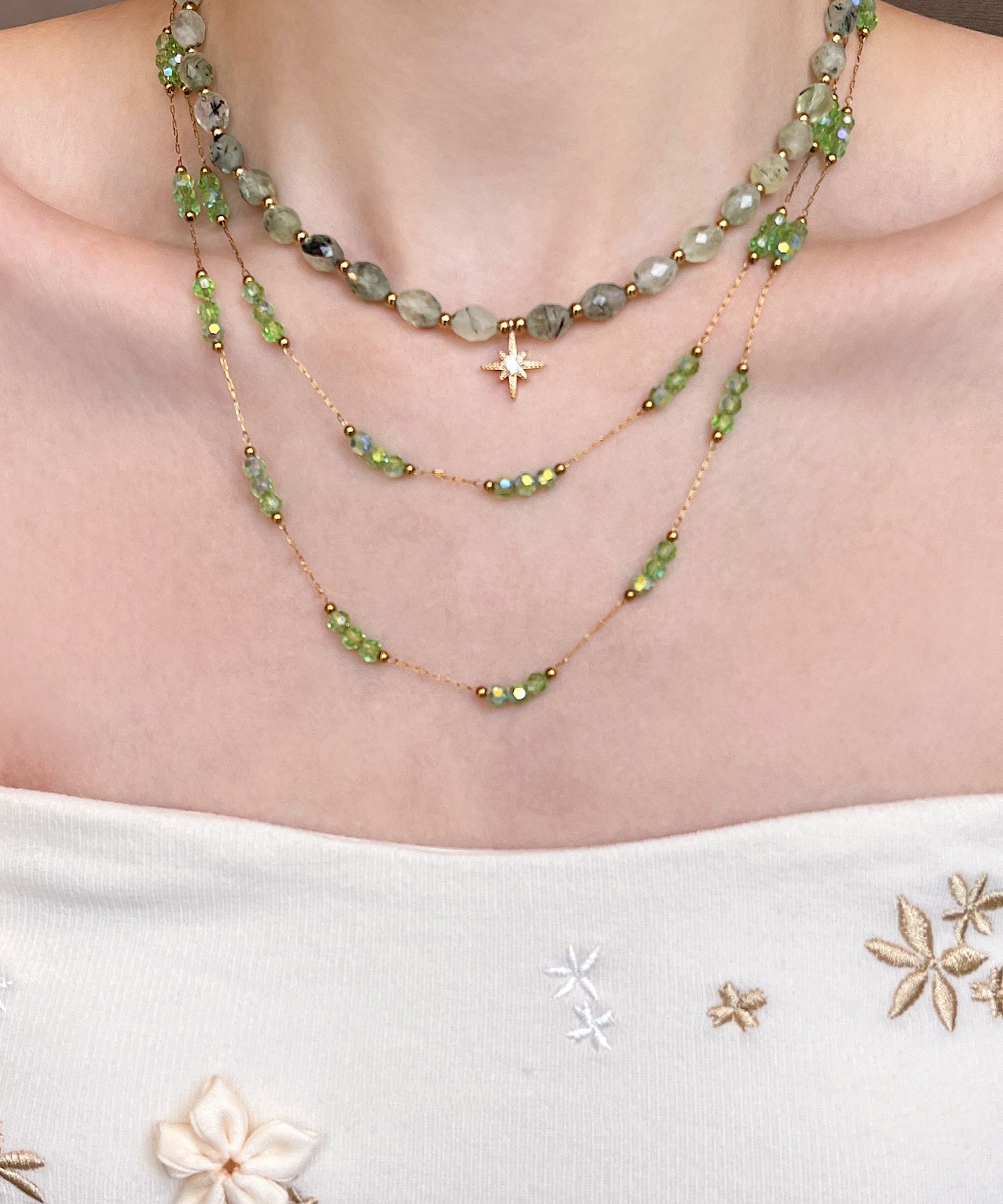 Elegant Green String Beads Layering Alloy Two Piece Set Necklace