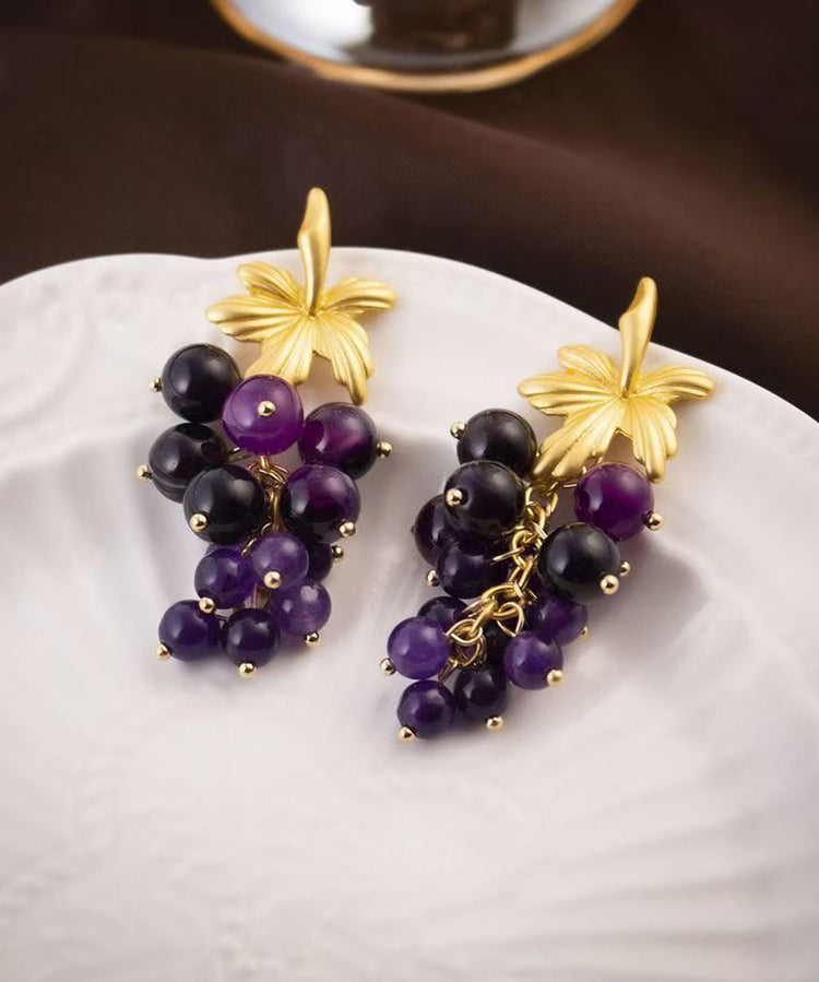 Fashion Dark Purple Sterling Silver Overgild Grape Drop Earrings
