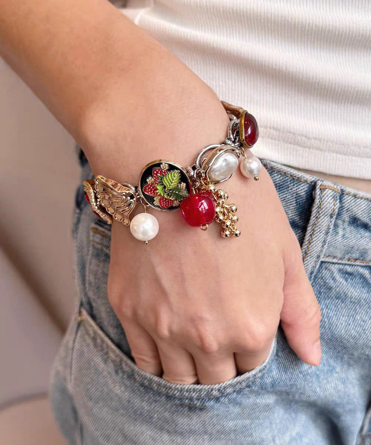 Vogue Red Stainless Steel Pearl Strawberry Charm Bracelet