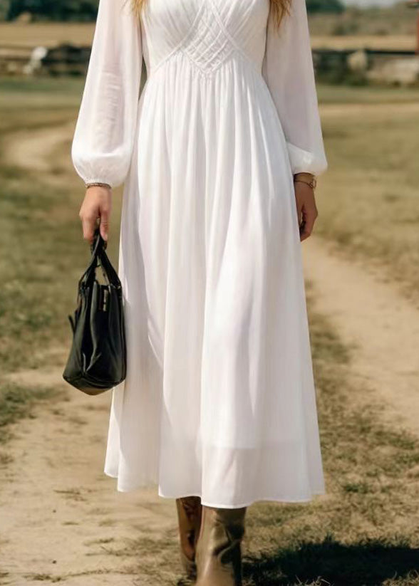 Elegant Simple White V Neck Chiffon Long Dress Spring