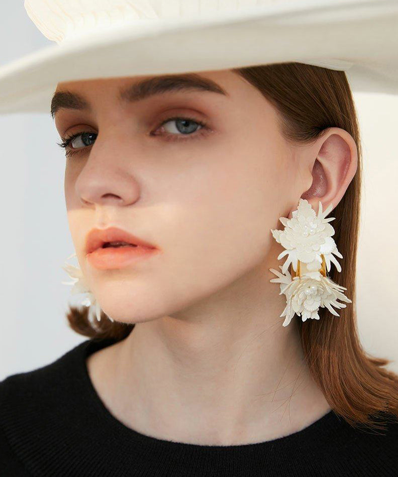 Handmade 3D Layered Flower Statement Earrings