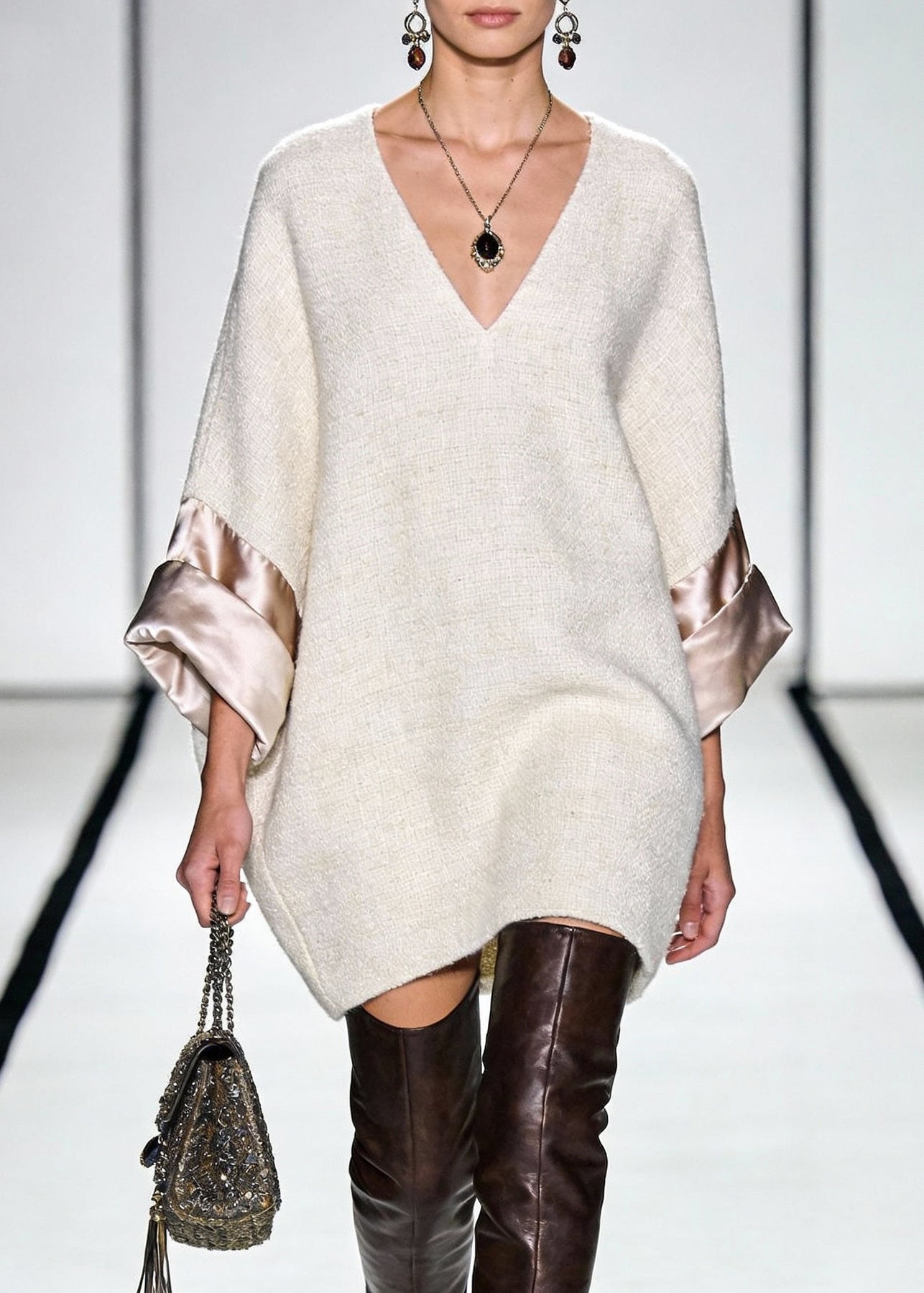 Linen Cozy Silk Patchwork Mini Dress V Neck