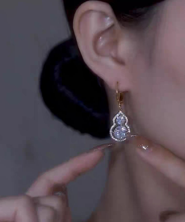 Original Design Gold Sterling Silver Overgild Zircon Calabash Drop Earrings
