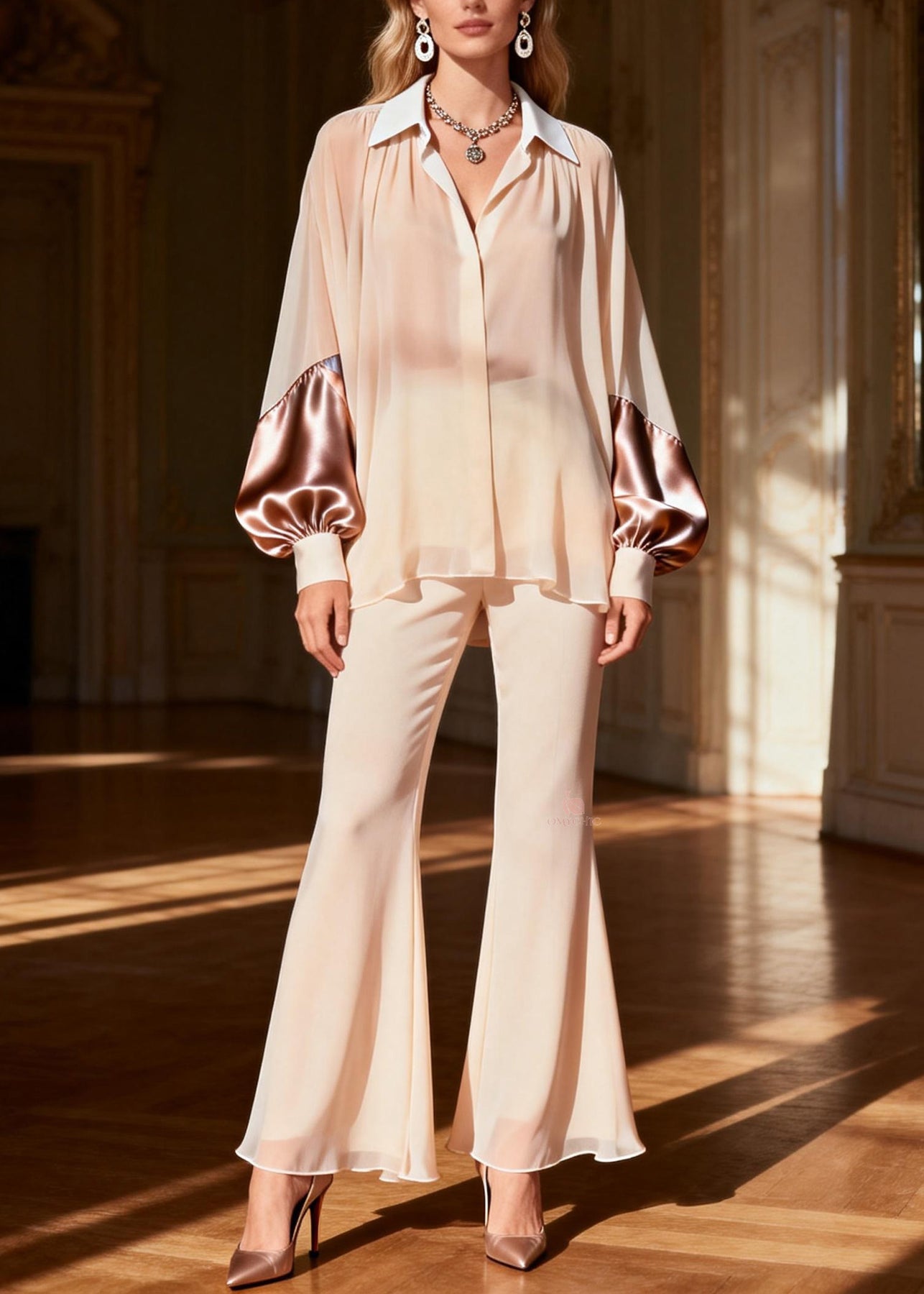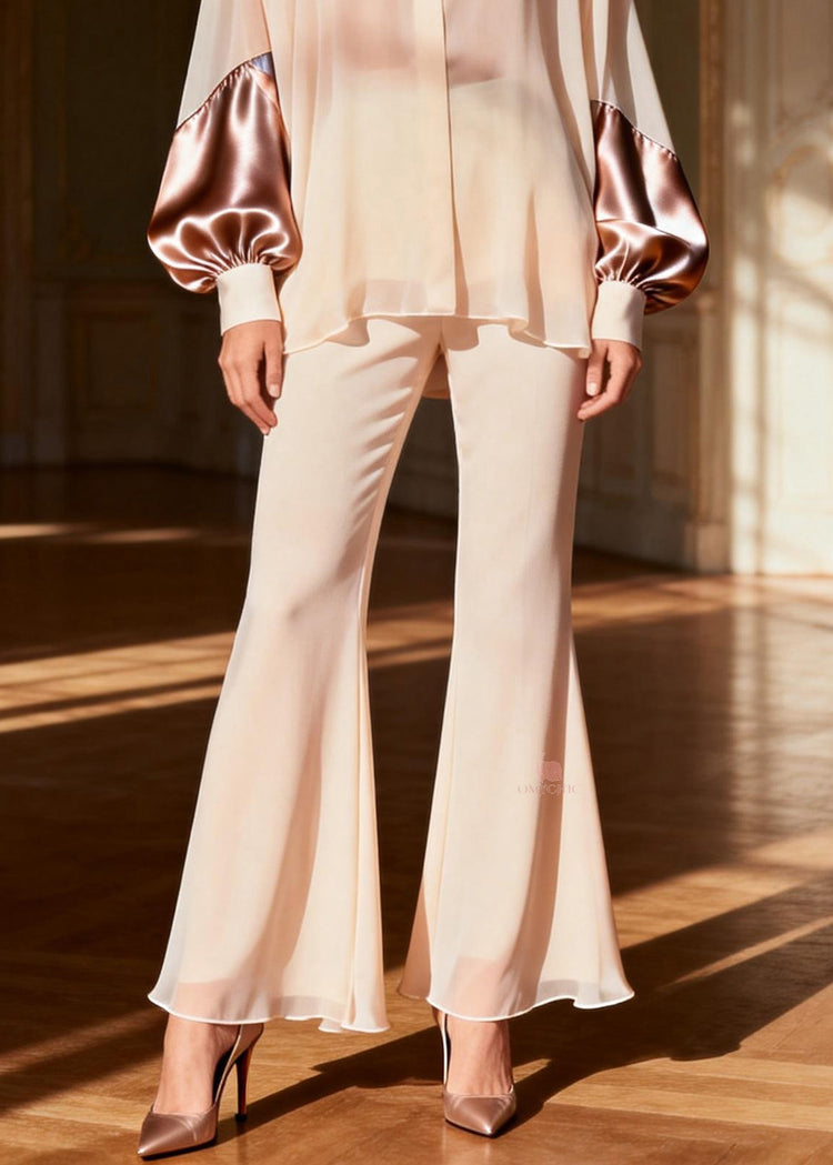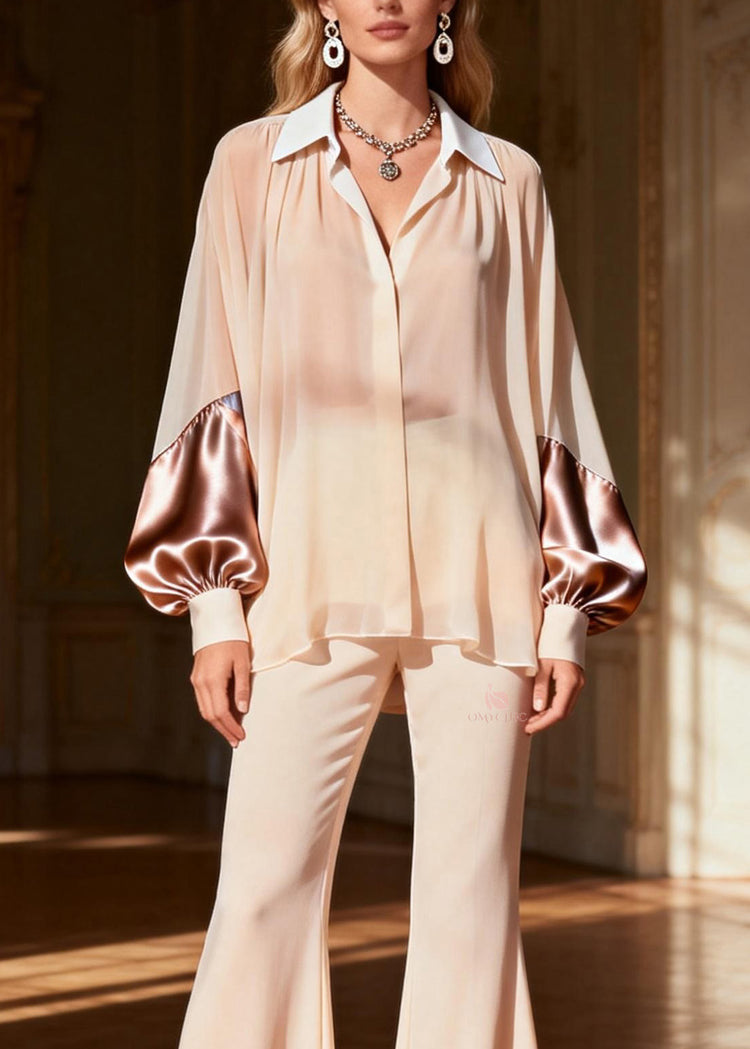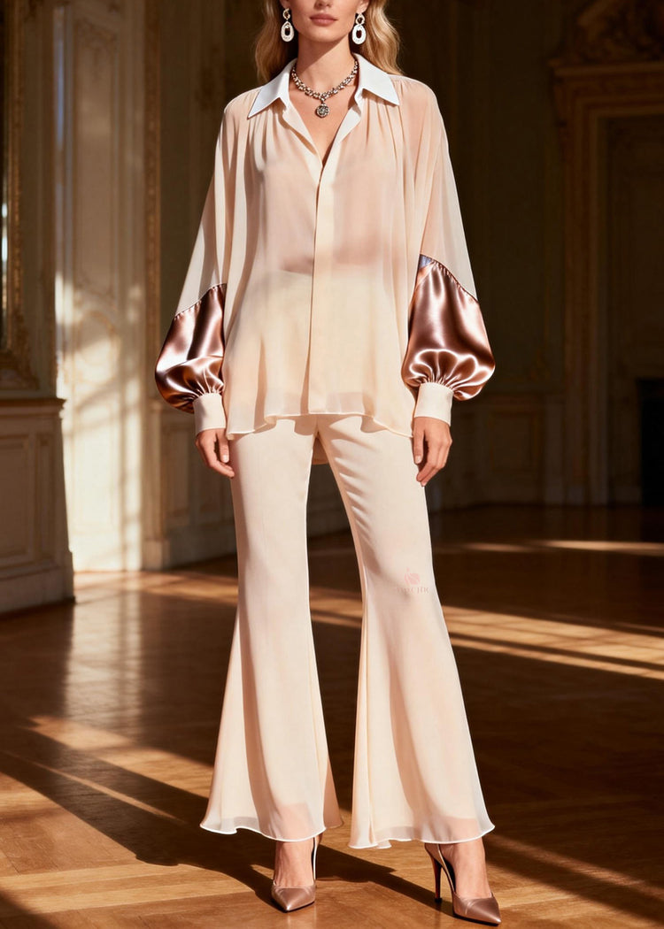 Classy Peter Pan Collar Patchwork Silk Two Pieces Set Spring