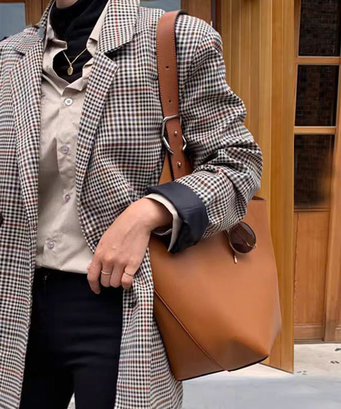 Boutique Brown Large Capacity Faux Leather Bucket Bag