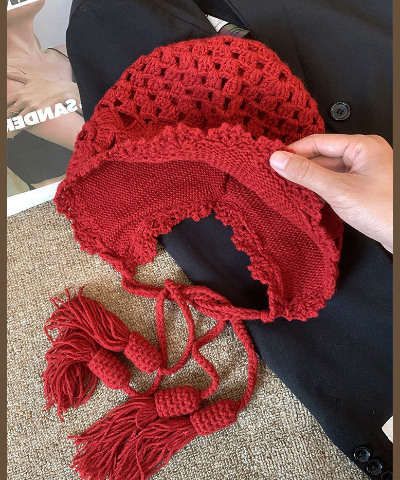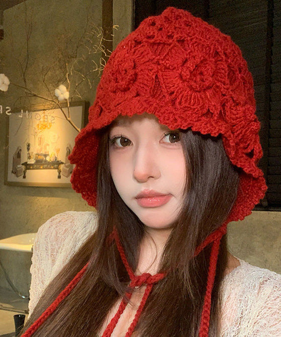 Bohemian Style Red Hollow Floral Knitted Boonie Hat