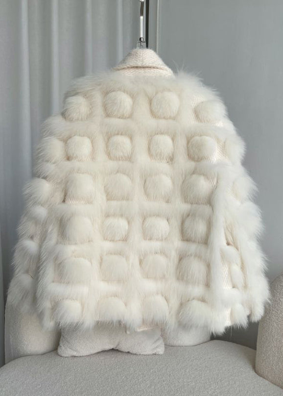 Boutique Beige Knit Patchwork Leather And Fur Jackets Winter