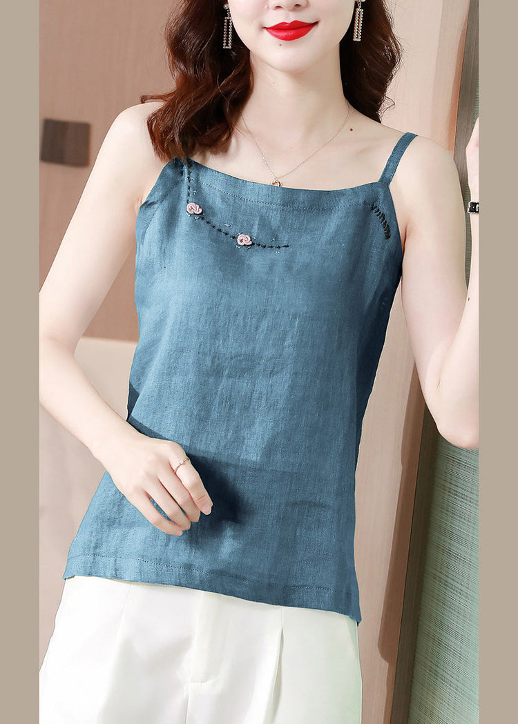 Chic Blue Embroideried Floral Tank Tops Summer