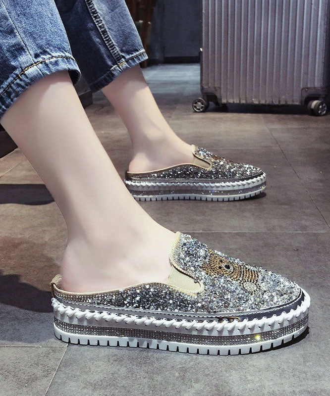Black Cartoon Zircon Splicing Casual Platform Slide Sandals