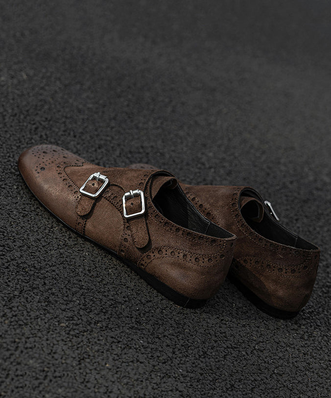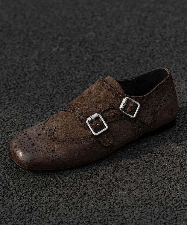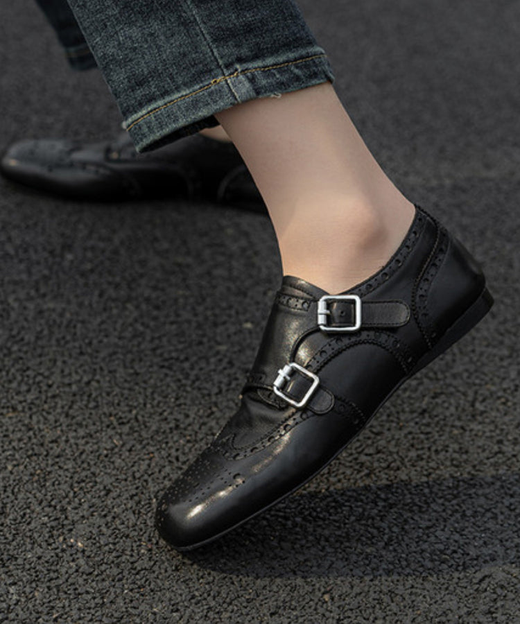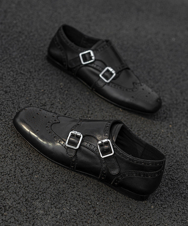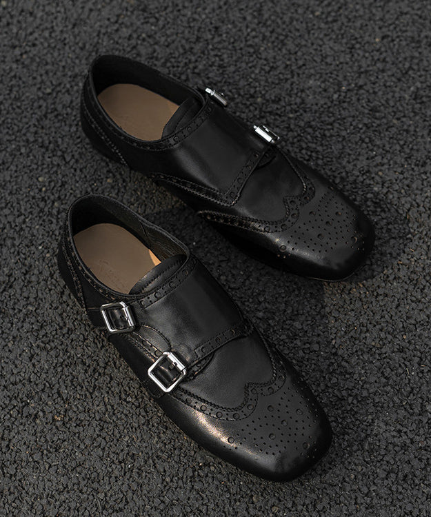 Black Embossed Cowhide Leather Splicing Loafers For Women