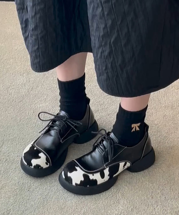 Black Lace Up Splicing Platform Loafers For Women