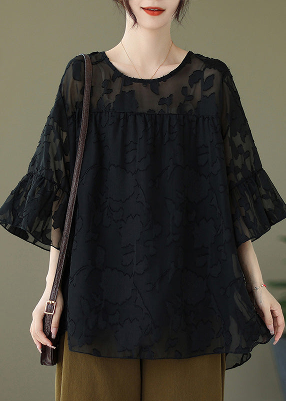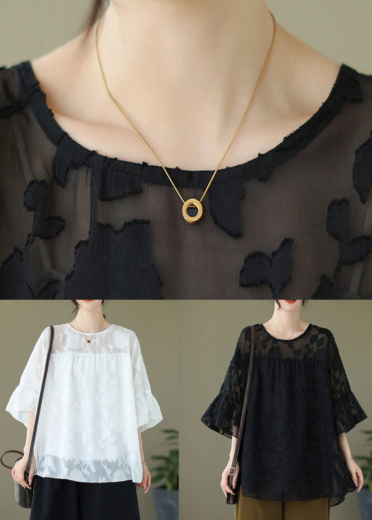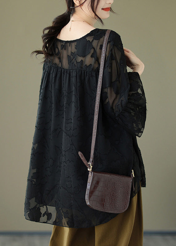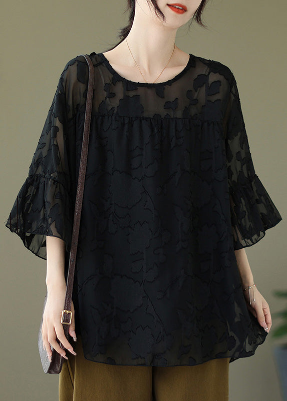 Black Low High Design Loose Tulle Shirt O Neck Summer