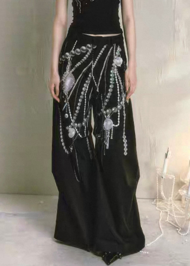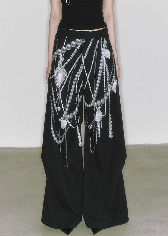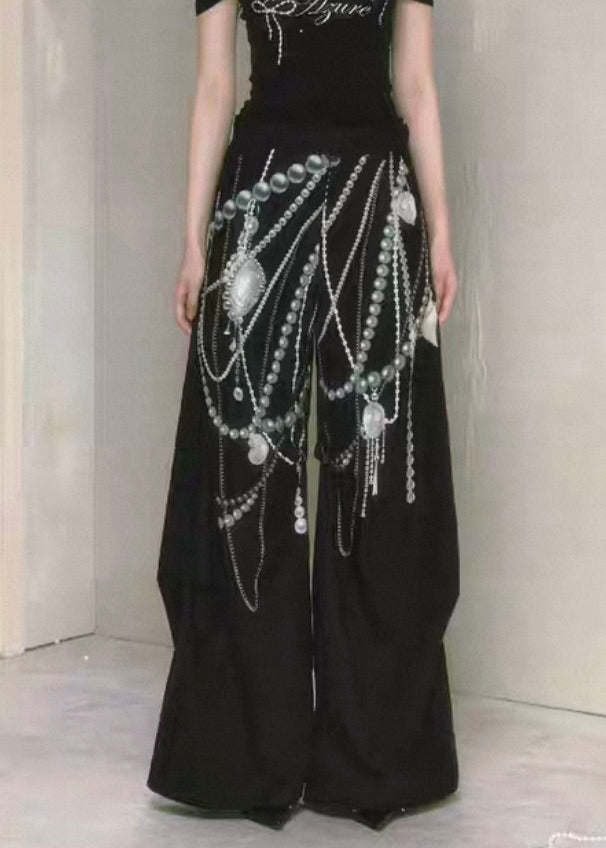 Black Original Design Cotton Summer Pants High Waist