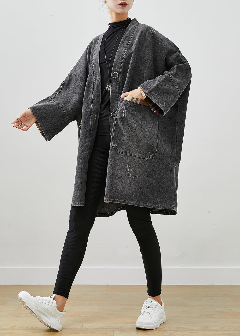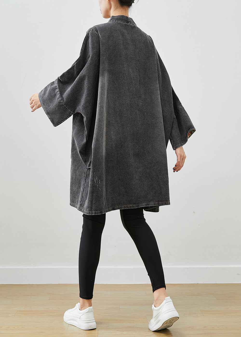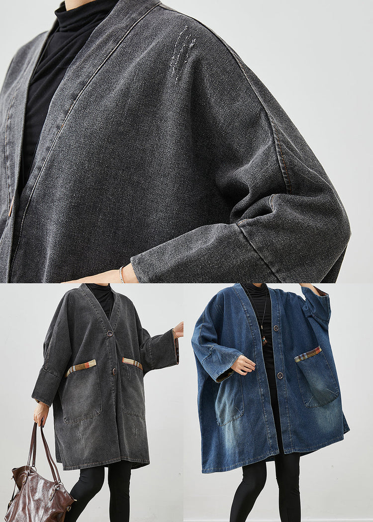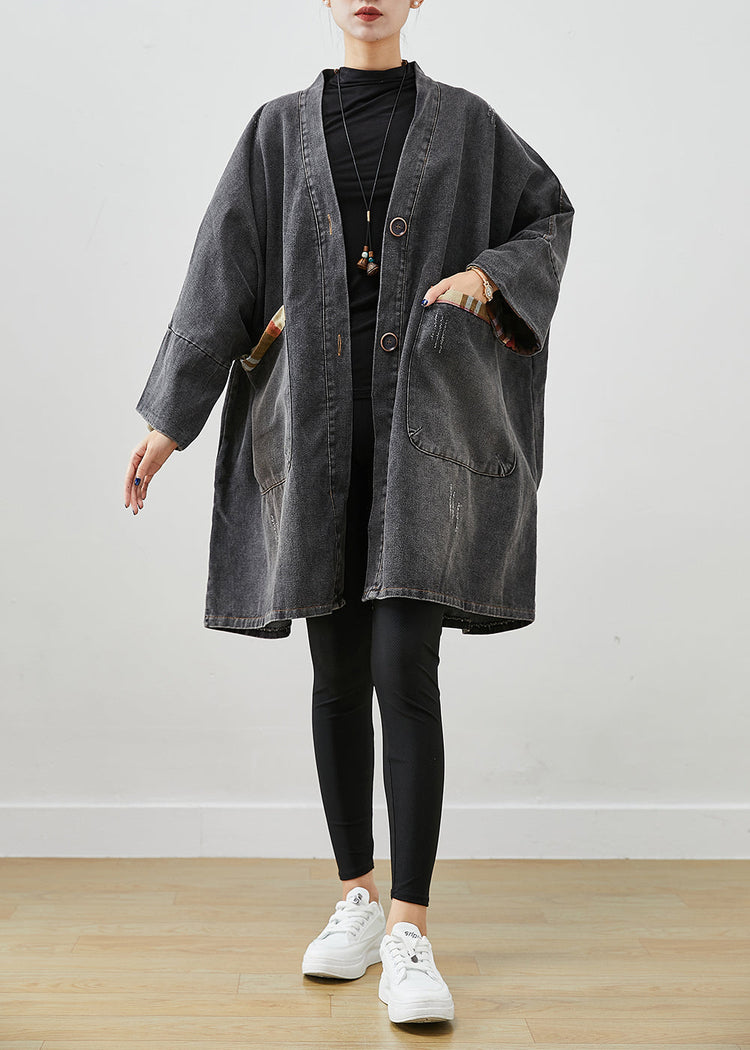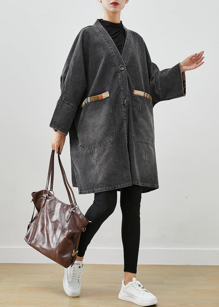 Black Patchwork Denim Trench Coat Outwear Oversized Fall