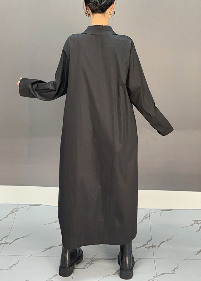 Black Pockets Maxi Dress Peter Pan Collar Spring