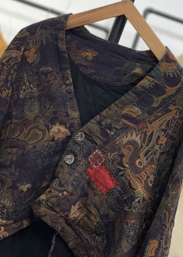 Black Pockets Patchwork Fine Cotton Filled Coat Asymmetrical Winter