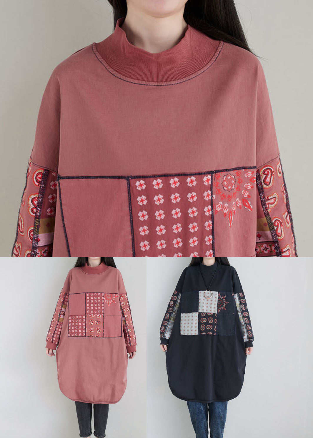 Black Print Cotton Sweatshirts Dress Oversized Side Open Spring