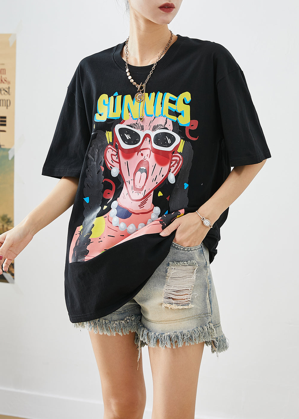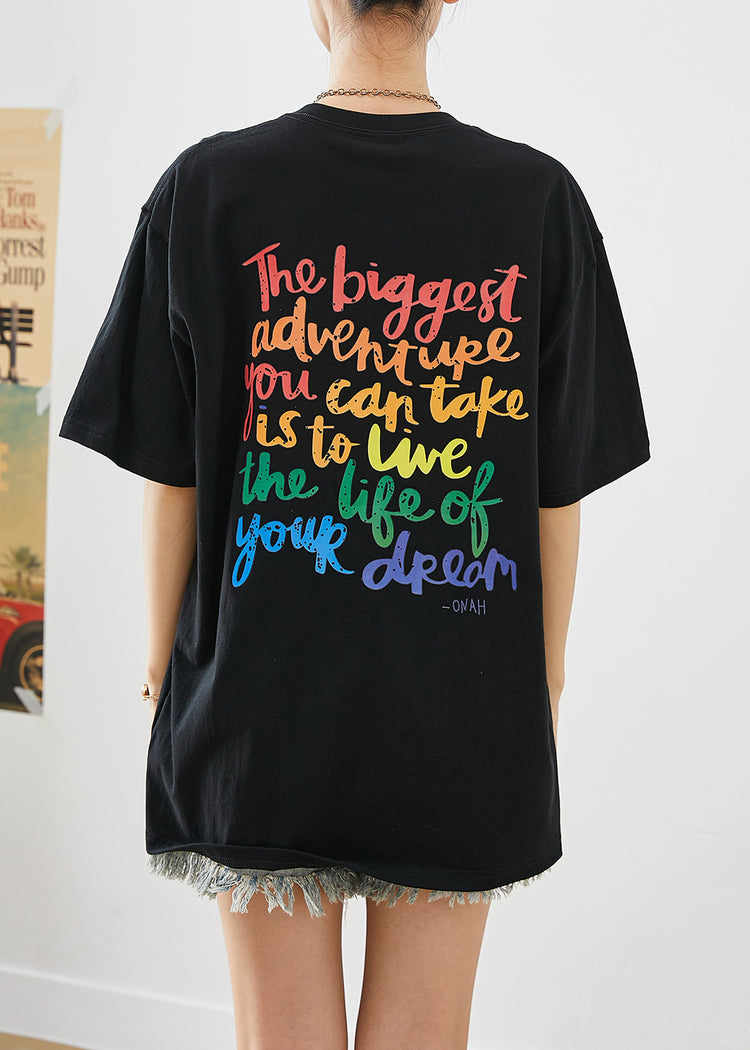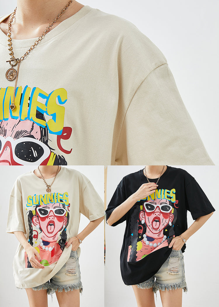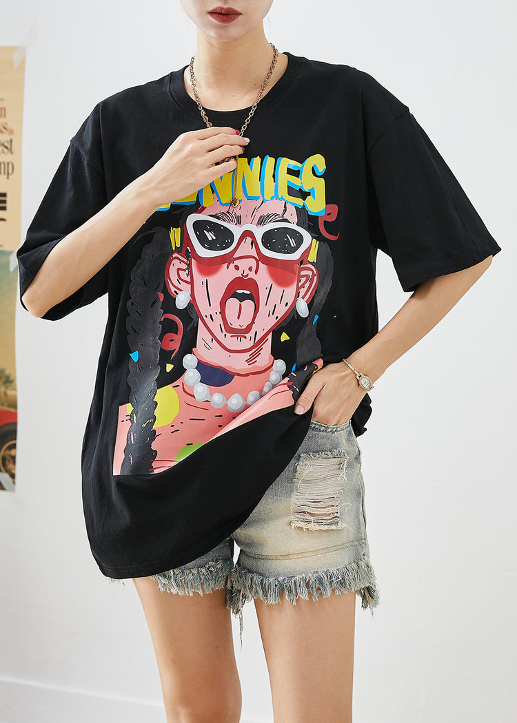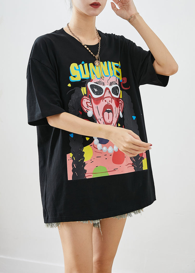 Black Print Cotton Tank Tops Oversized Summer