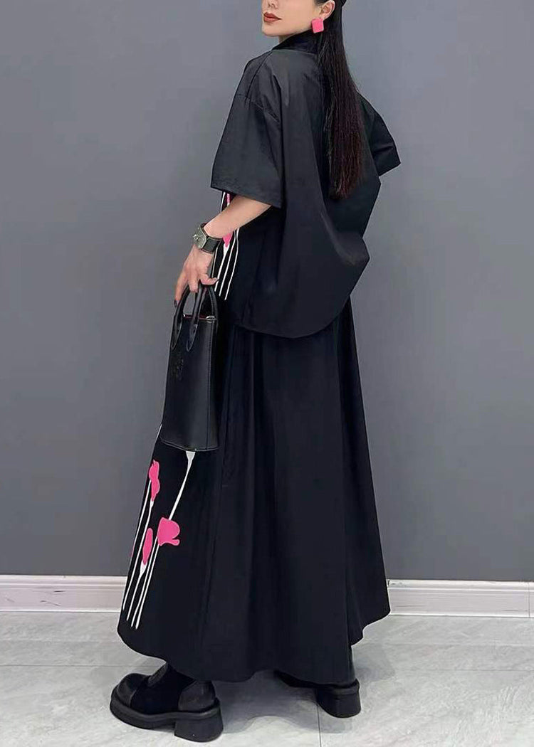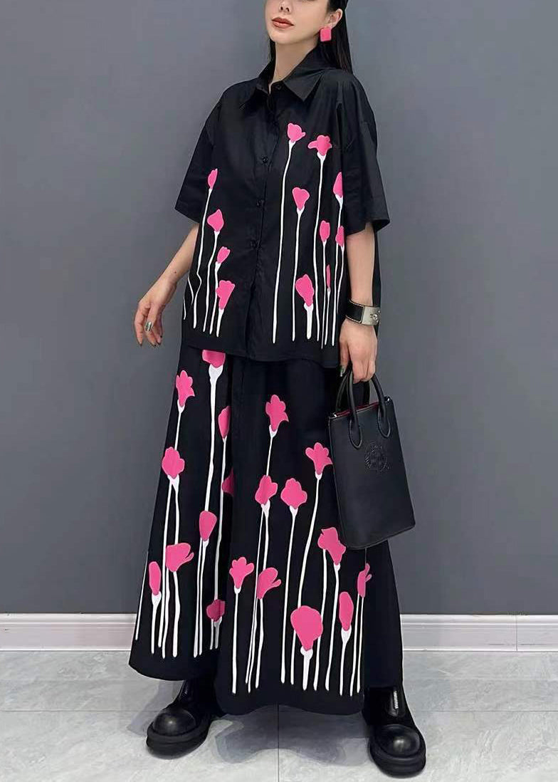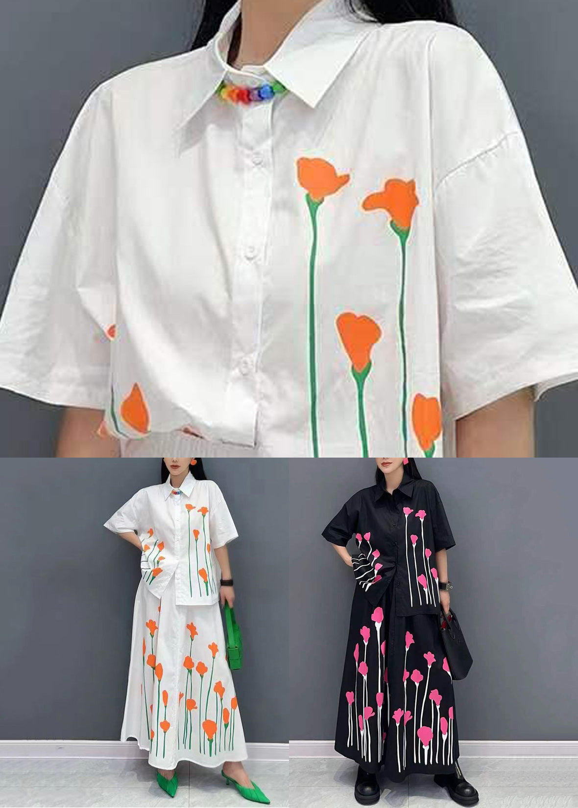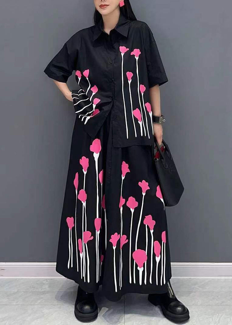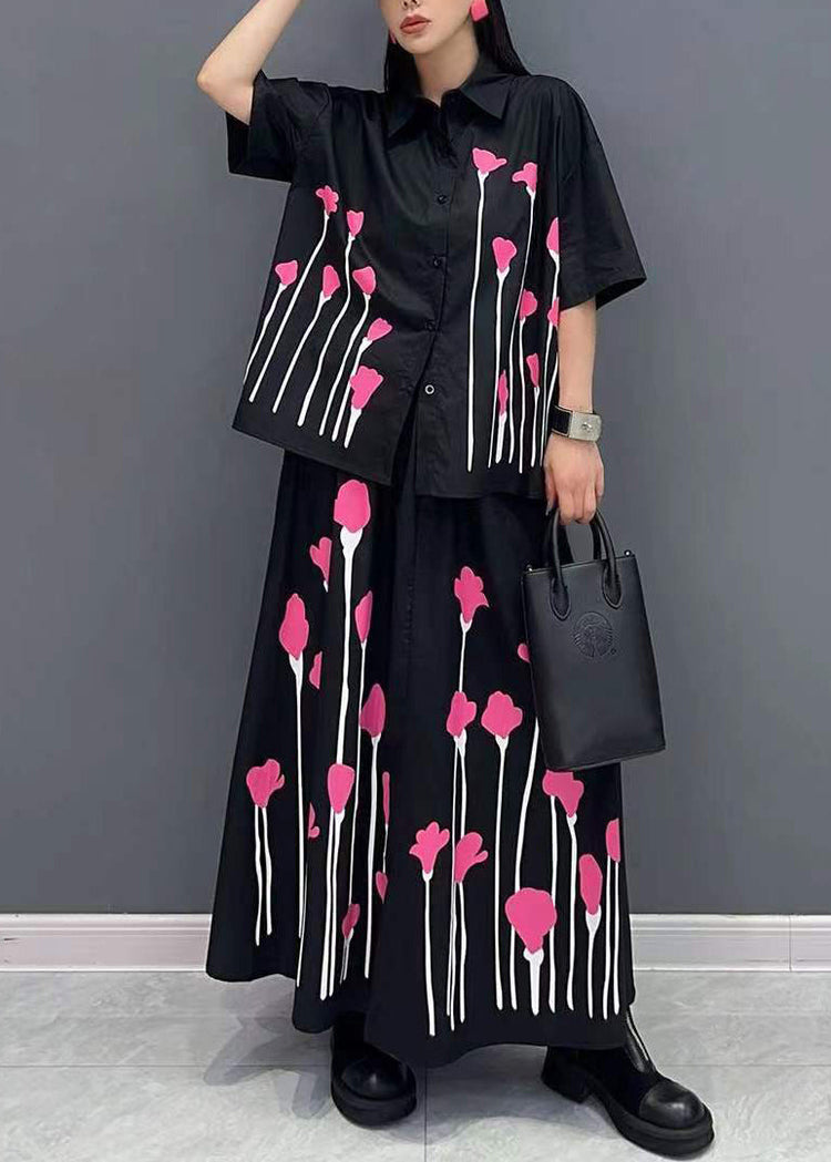 Black Print Shirt And Skirts Two Pieces Set Summer